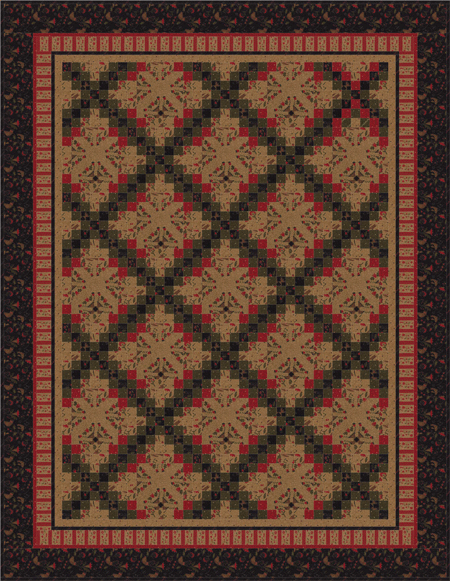 What's better than a cozy lap quilt to keep you warm on cold winter nights. This pattern coincidentally called "Cabin Cozy", features Kathy Schmitz's upcoming line "Bits and Pieces". The rich colors of this fabric line, available in May of this year, will be great in your family room or den from September to April.